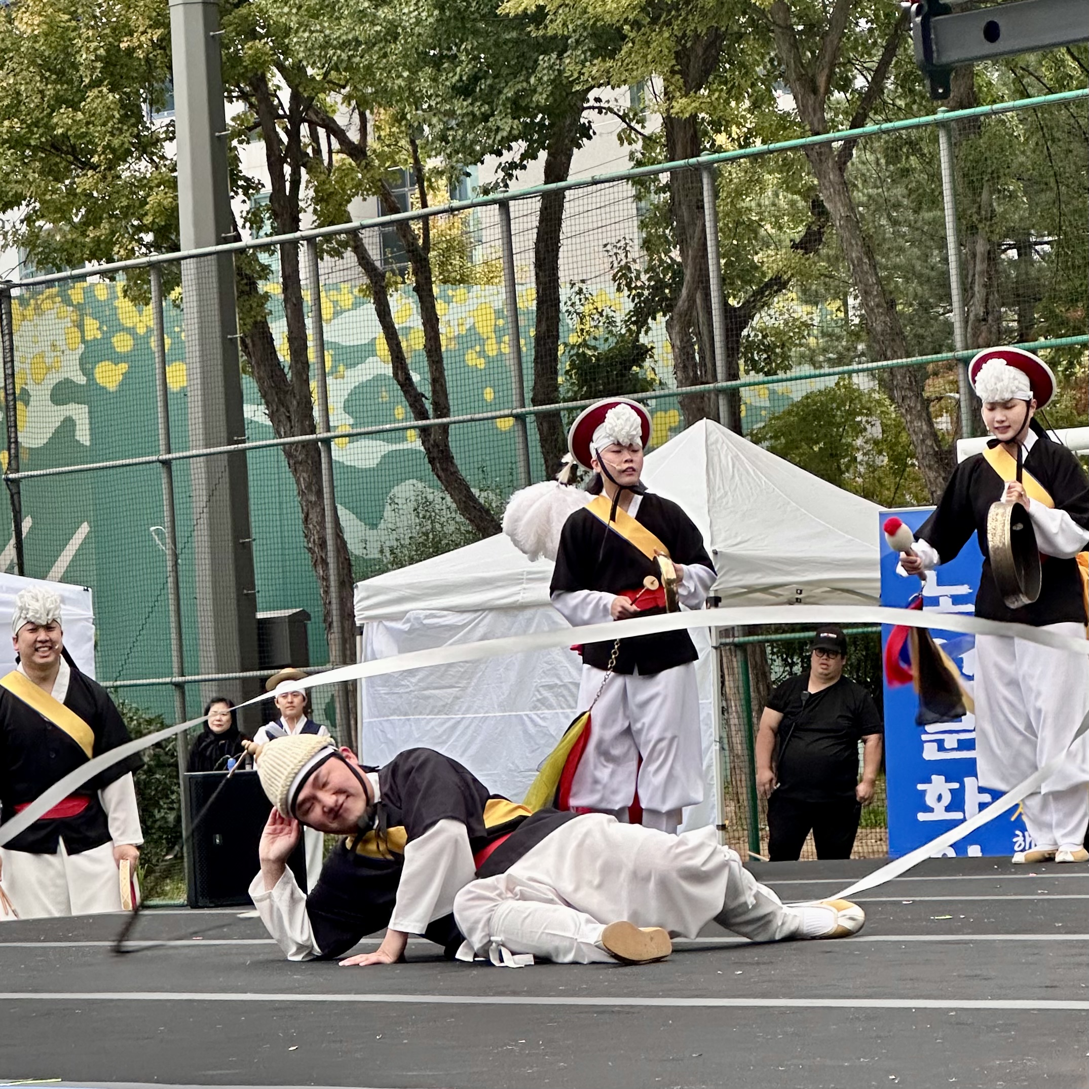 어서 오시라는 목소리가 울려 퍼졌습니다. 따뜻한 보리차와 핫팩, 무릎담요를 나누어주는 손길도 있었죠. 관객석 뒤에는 사물놀이패가 입장 순서를 기다리고 있었습니다. 동네 공원이 한판 신명나는 마당으로 바뀌는 건 일순간이었어요.